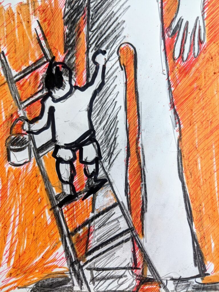 Ein Engel – sehr abstrakt gezeichnet.
