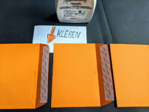 Nun klebst Du die jeweils geschlossenen Umschlagseiten an die Briefklappen. Dein Faltbuch wird immer länger – fast schon eine Schlange.